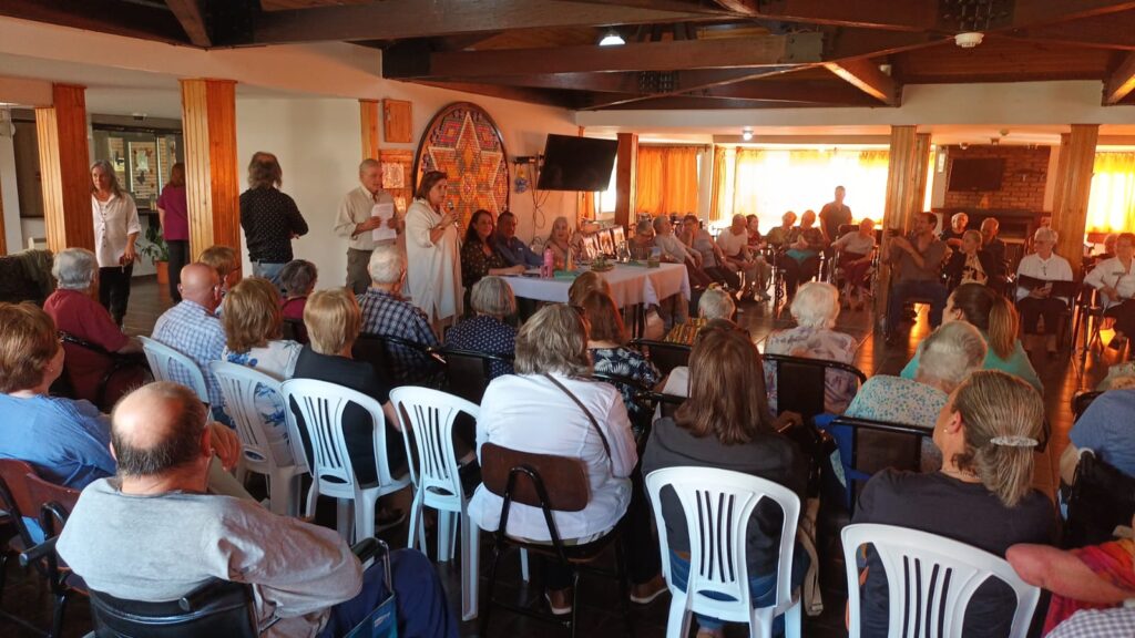 Finalizada la primera parte protocolar del evento, la expresión artística comenzó alimentar nuestro espíritu. El Coro «La alegría de Vivir», dirigido por Mariana Bentancour Ferreira, e integrado por algunas de las residentes del Hogar. Nos sorprendieron interpretando dos temas, «Cielito desde el Jardín», con letra de Winston. Emocionado, el autor se levantó para iniciar el recitado con esta sentida estrofa:
